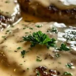 - Nestle patties into the gravy. Cover tightly and bake at 350°F for 45 minutes, then uncover and bake 15 more. This slow cozy bake makes everything tender.