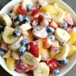 Keywords: fruit salad, creamy salad, easy recipe, healthy dessert, picnic food