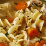 This version keeps things simple and satisfying. You get real homemade broth, not the sad boxed stuff pretending to be chicken. It uses an actual whole cut up fryer chicken because bones make the soup sing. The method? Pretty straightforward. Boil, skim, simmer, shred, season, and slurp.