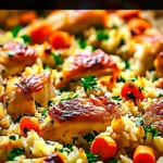 This chicken and rice casserole is the kind of recipe you keep in your back pocket for nights when life demands dinner but offers zero cooperation. It is comforting flexible and forgiving. Leftovers transform into next day wins and you will feel secretly proud when the family asks for seconds.