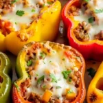 A comforting and easy recipe for stuffed bell peppers filled with savory beef, rice, and cheese — perfect for a cozy meal.
