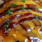 This flavorful dish combines smoky bacon, tangy barbecue sauce, and melty cheddar cheese all topped on juicy chicken breasts, making it a quick and impressive meal.