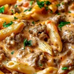Keywords: creamy pasta, beef pasta, quick dinner, comfort food, easy recipe