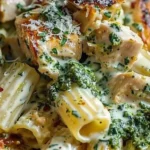 Creamy Pesto Chicken Pasta is a cozy, satisfying meal that feels like a hug on a plate. The sauce is silky, the pesto adds bright basil flavor, and the melty cheese on top makes every bite irresistible. Many home cooks love this dish because it combines familiar comfort with an herb-forward twist.