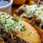 Also did I mention the au jus? That liquid is the MVP. Use it for dipping, sipping, or pretending you are at a French bistro. FYI this is comfort food at its most chill. Oh and if you need a cheesy appetizer while the roast cooks these cheesy French pinwheels pair nicely and keep people out of the kitchen.