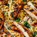 A quick and delicious Mediterranean chicken orzo dish that combines juicy chicken, bright lemon flavors, spinach, and sun-dried tomatoes, all cooked in one skillet.