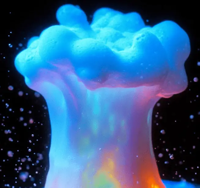 The glowing volcano is visually stunning and full of texture. When the vinegar hits the baking soda, the mixture fizzes and foams, rising up and overflowing like a miniature volcanic eruption. The use of glow-in-the-dark and neon paints makes the foam shimmer in dim lighting or under a blacklight, casting a glowing, magical appearance. The reaction is both bubbly and soft to the touch, giving kids a fascinating sensory experience. The rainbow version is even more impressive, producing a mix of vibrant, swirling colors as the foam bursts forth.