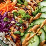 If you want a vegan spin with similar peanut sauce vibes check out this Peanut Tofu Buddha Bowl (Vegan and High Protein) for extra inspiration and plant powered protein options.