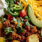 This recipe blends flavors from classic tacos with the comfort of potatoes. It’s not tied to one long tradition, but it borrows the best parts of Mexican-style taco flavors and makes them hearty and homey. The result is a bowl that’s filling, colorful, and full of texture.