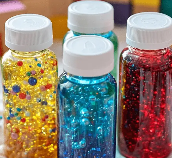 These items are budget-friendly, easy to find, and safe when used with adult supervision. You can find small plastic bottles at most dollar stores, or reuse mini water bottles from your recycling bin. The contents inside can be customized based on themes, colors, or textures for a truly personalized sensory experience.