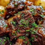 - Transfer beef and potatoes to a serving platter, spoon extra sauce over, sprinkle with fresh parsley, and serve warm.