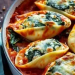 Comforting stuffed pasta shells filled with a cheesy ricotta and spinach mixture, baked to perfection in marinara sauce.