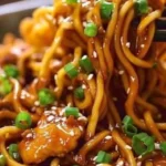 A quick and tasty dish featuring sticky, glossy sauce, chicken, and noodles that’s perfect for a satisfying meal.